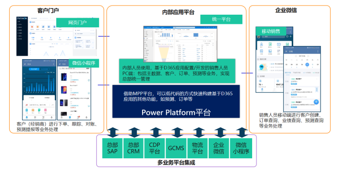 隨著市場(chǎng)的不斷擴(kuò)大,訂單量劇增,德莎對(duì)數(shù)字工具和服務(wù)的需求比以往任何時(shí)候都要旺盛。經(jīng)過(guò)對(duì)比調(diào)研,德莎決定牽手瑞泰信息,在基于Power platform平臺(tái)構(gòu)建CCP(客戶協(xié)同平臺(tái)),設(shè)立連接、體驗(yàn)、自主、可控的整體項(xiàng)目目標(biāo),以客戶門戶,企業(yè)微信,微信小程序連接銷售團(tuán)隊(duì)和渠道伙伴,實(shí)現(xiàn)快速響應(yīng)和高效協(xié)作。