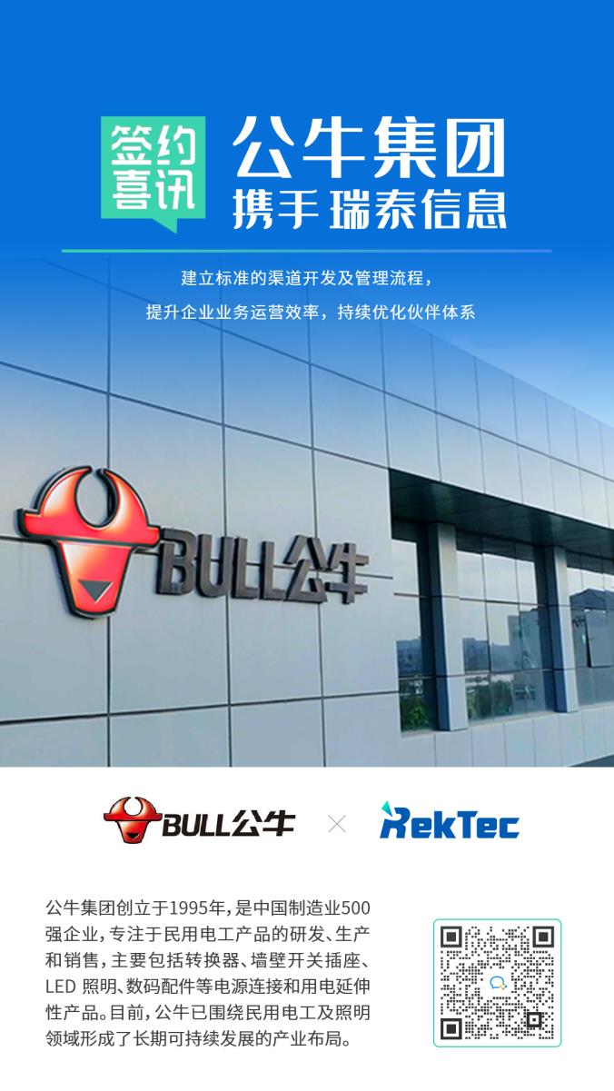 近日,公牛集團(股票代碼:603195)再次攜手瑞泰信息,共建標準的渠道開發及管理流程,提升企業業務運營效率,持續優化伙伴體系。